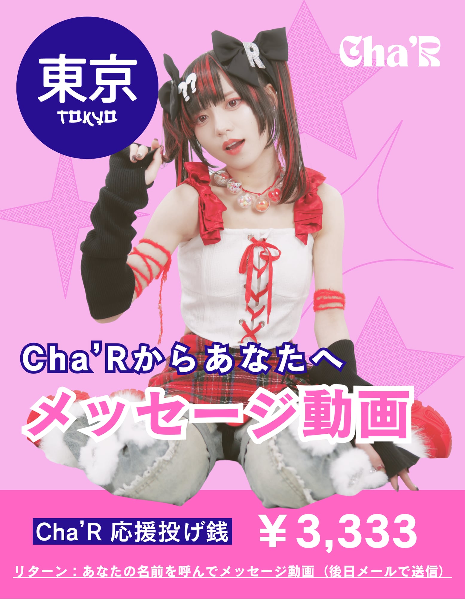 【Cha’R】2026/3/29 東京ワンマンライブ応援投げ銭 ※お礼・あなたの名前を呼んでメッセージ動画(後日メールで送信)